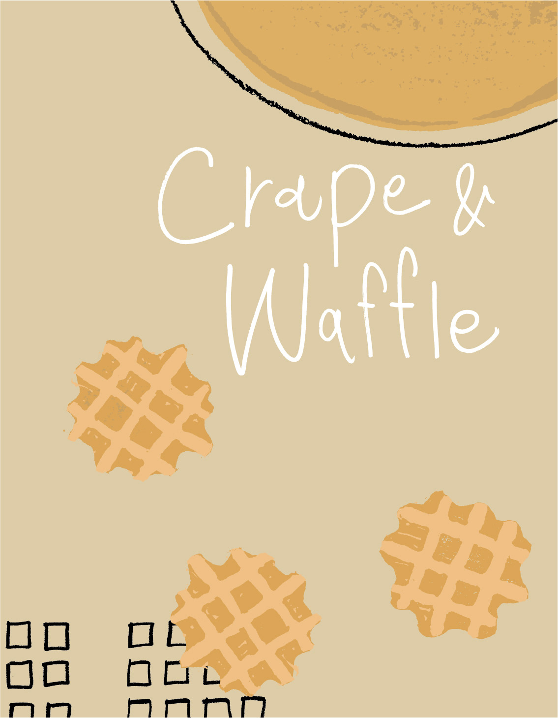『たかこさんの粉ものお菓子』の扉用に描いた文字とイラスト。
